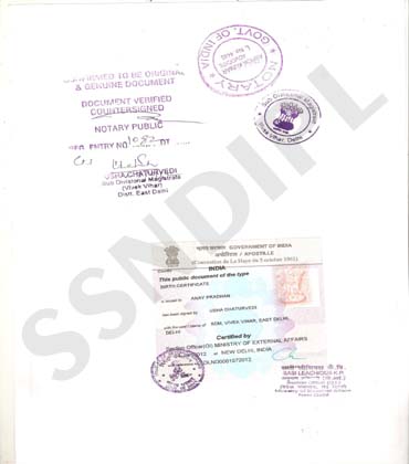Below are some certificate sample that is attestation, apostille, authentication, embassy attestation, translation, legalisation by Shree sai documentation, New Delhi